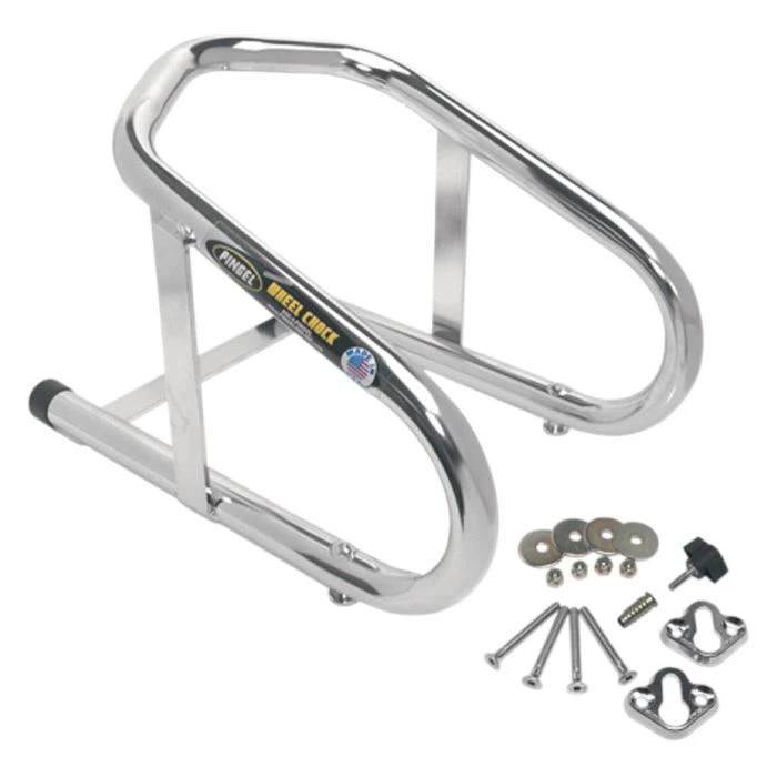 - Removable chock is made of thick-wall steel tube construction with a show chrome finish