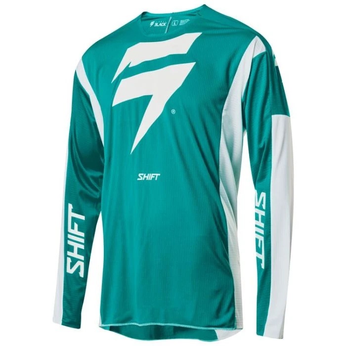 Featuring a minimalist dual-color design, the 3lack Label Race Jersey is primed to standout on the track for its appearance while keeping you out in front with its performance. The iconic Shift bar bolt emblem is centered on the chest, while the Shift wordmark flanks each inner arm. Offered in multiple standout colourways, the 3lack Label jersy is a favorite of the Geico Honda team. The 3lack Label jersey’s combination of stretch and ventilation provides you with the most free and breathable riding experience on the market.